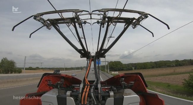 Пятикилометровый участок на трассе A5 между городами Вайтерштадт и Мёрфельден оборудовали подвесными электросетями. Пять специально разработанных фур с гибридными силовыми установками смогут заряжать свои батареи от контактной сети через пантографы. На этом заряде грузовик сможет продолжать движение, даже выехав с автобана.