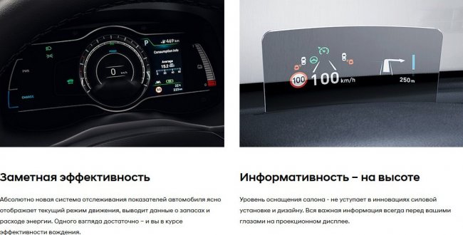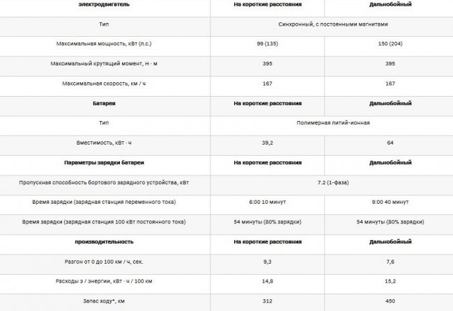 К особенностям этой модификации электрокара также можно отнести бесключевой доступ и кнопку запуска двигателя, электронный парковочный тормоз, подогрев руля и передних сидений, мультимедийную система с 7-дюймовым сенсорным дисплеем с приложениями Apple CarPlay и Android Auto, камеру заднего вида, панель приборов SuperVi sion с 7-дюймовым LCD монитором, 17-дюймовые легкосплавные колесные диски и другое оборудование.