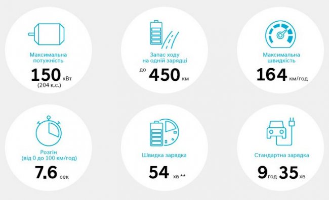 В комплектации Express стоимостью от 923 100 гривен с батареей 39.2 кВт*ч покупателю будут доступны система подогрева АКБ, система рекуперации энергии при торможении, 6 подушек безопасности, ABS, ESC, HAC, система предупреждения о выходе из полосы движения, двухзонный климат-контроль, выбор режима вождения Drive Mode Select.