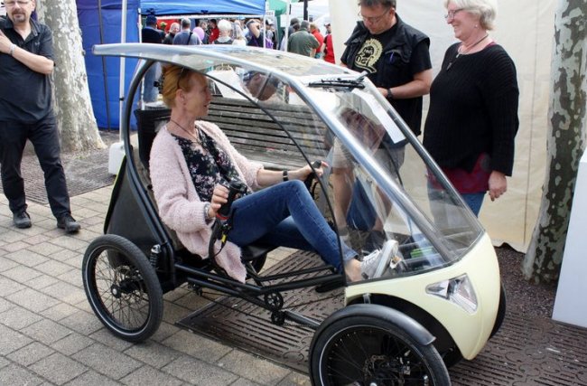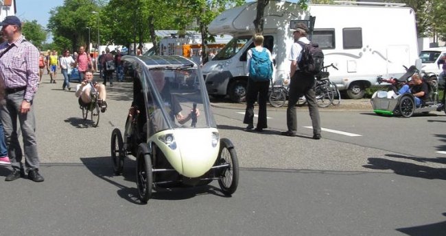Созданная немецким изобретателем Томасом Фибахом одноместная веломашина получила 21-скоростную трансмиссию с педальным приводом от правого заднего колеса и ступичным мотором в левом заднем колесе, который может выступать в качестве ассистента мышечной силе велосипедиста.