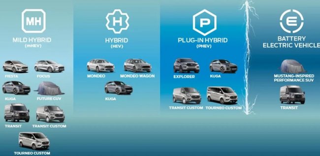 Также были анонсированы новый восьмиместный минивэн Tourneo Custom Plug-In Hybrid и новые Fiesta EcoBoost Hybrid и Focus EcoBoost Hybrid, укомплектованные силовыми установками на основе «мягкого» гибрида, обеспечивающими низкий уровень выбросов СО2, оптимизированный расход топлива и более отзывчивое управление.