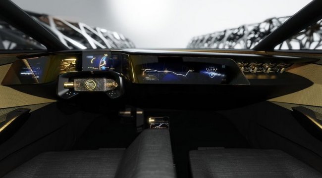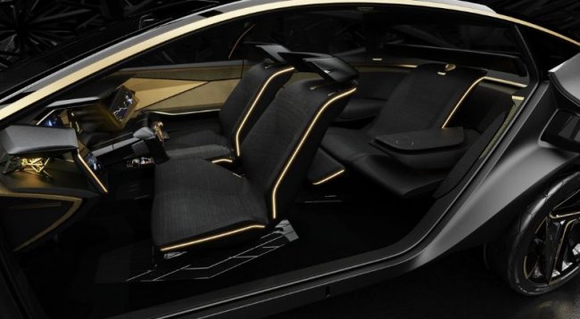 Внутри салона органы управления и передние сидения имеют вполне стандартную основу, хотя и выглядят сверхфутуристично. Разумеется, рулевое колесо имеет форму квадрата, а не круга, а минимизированный медиадисплей и приборная панель — это выдвижные тонкие ЖК-панели. Литой дизайн интерьера образует центральную консоль между водителем и передним пассажиром.