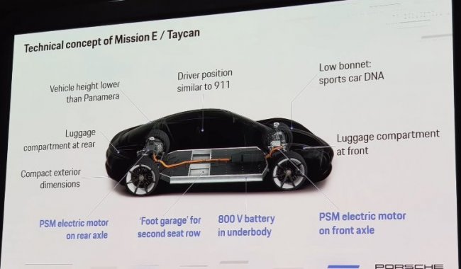 Два электромотора Porsche Taycan (по одному на ось) от итальянского производителя Magneti Marelli выдают в общей сложности до 440 кВт (600 л. с.). До первой «сотни» электромобиль ускоряется за 3,5 секунды, а без дополнительной подзарядки способен пройти до 500 км. Если для «заправки» аккумулятора использовать специально разработанную станцию на на 350 кВт, то хватит и четырех минут подзарядки, чтобы полученной энергии хватило еще на 100 км дороги.