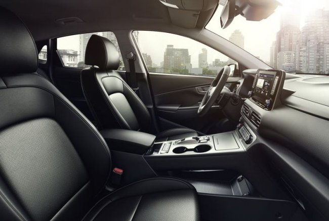 Электромобиль Hyundai Kona Electric немного выше (на 20 мм) и длиннее (на 15 мм), чем стандартная ДВС-ная версия кроссовера и имеет закрытую «радиаторную решетку». Передние сиденья оснащены вентиляцией, обогревом и электрической регулировкой (восемь положений), а водительское кресло также получило двухпозиционный поясничный подпор. Заказчики автомобиля смогут выбирать из 21 вариантов окраски кузова.
