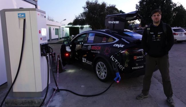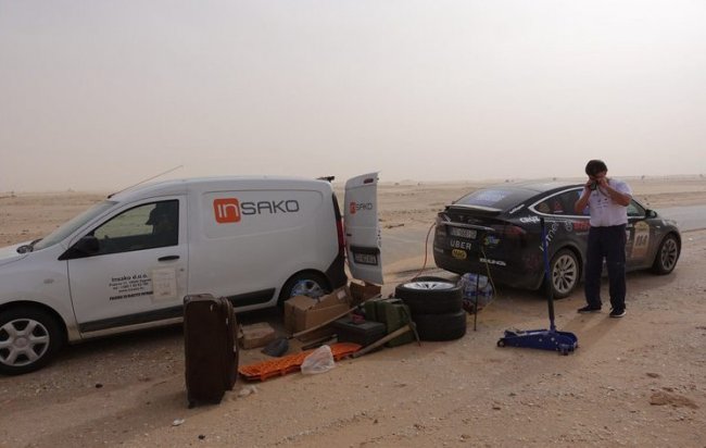 Ограниченный запас хода электромобиля не стал помехой. Батареи хорваты заряжали от местных электросетей в городах и селах, которые они проезжали. В Марокко удалось зарядиться на фирменной зарядной станции от Tesla, которую там в свое время установили поклонники марки. На территории пустыни экипаж пользовался для зарядки аккумуляторов генератором, установленным на автомобиле сопровождения.