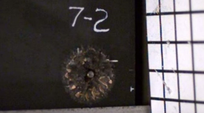 Команда специалистов Университета Северная Каролина обнаружила, что слой композитной пены толщиной в дюйм сможет остановить выпущенную пулю. На видео хорошо заметно, как пуля после выстрела вместо того, чтобы пробить насквозь мишень из композитной пены буквально разлетается на мелкие кусочки.