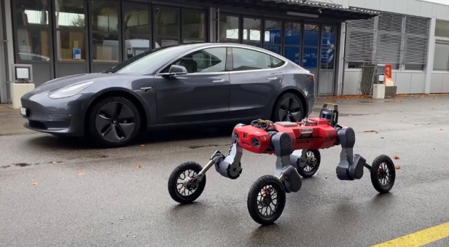Впервые четвероногий робот стартапа ANYbotics, созданный выходцами из Высшей технической школы Цюриха (ETH Zurich), был представлен около года назад. Недавно их разработка получила интересную модификацию – четыре колеса, которые позволили роботу не только ходить, но и ездить. Новый колесный ANYmal теперь также может вертикально стоять на двух конечностях и вскоре будет задействован в работе городских служб доставки.