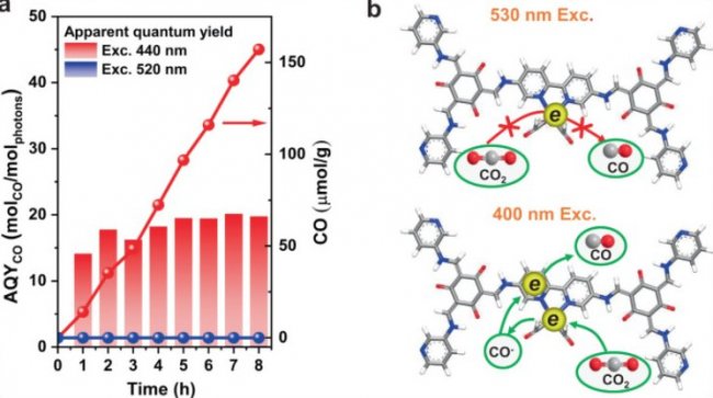 В своей работе ученые взяли за основу пористый органический материал под названием COF — ковалентный органический каркас. Этот материал известен тем, что очень эффективно поглощает солнечный свет. Добавив к COF так называемый каталитический комплекс, им удалось без дополнительной энергии преобразовать углекислый газ в монооксид углерода.