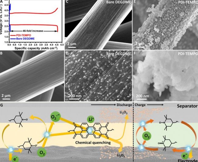 В своем исследовании ученые подробно описали работу батареи Li-O2 с помощью нового механизма, основанного на прямых химических реакциях между универсальной молекулой и супероксидным радикалом/Li2O2. Аккумулятор демонстрирует 46-кратное увеличение разрядной емкости, низкое перенапряжение заряда (0,7 В) и сверхдлительный срок службы (более 1400 циклов).