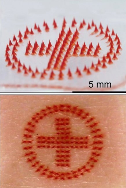 Нанесение татуировок сегодня, как и много веков назад, связано с болью. Многие люди готовы терпеть ее, чтобы украсить свое тело. Однако, другие завидуют их воле, но не хотят и думать о том, что им придется страдать. В Технологическом институте Джорджии нашли способ нанесения картинок на кожу без какого-либо намека на боль. Для этого в научном центре разработали пластырь, одна сторона которого покрыта микроиглами.