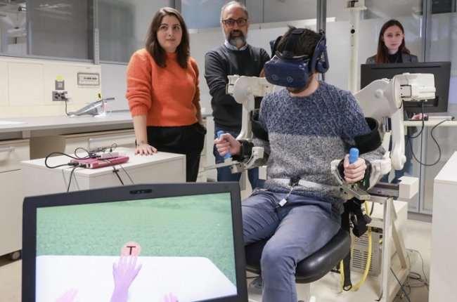 На первой стадии исследования участникам давали гарнитуры виртуальной реальности, перчатки и специальный пояс с датчиками движения мышц живота. В ВР отображались три руки, третья была симметричной, с двумя большими пальцами с каждой стороны, и управлялась движениями живота. Эксперименты с 61 волонтером на протяжении 150 часов показали, что люди очень быстро осваивают такую систему и начинают вполне сносно управлять третьей рукой.
