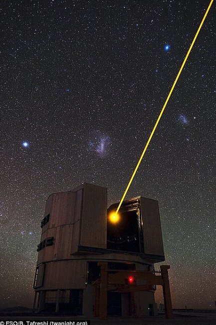 А это лазер, с помощью которого астрономы измеряют эффекты рассеяния атмосферы Земли: