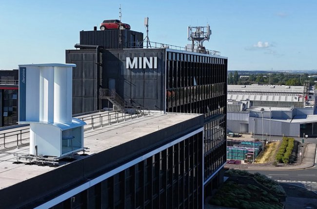 Компания Aeromine Technologies из Хьюстона установила комплект неподвижных ветровых турбин на крыше завода BMW в Оксфорде, Великобритания. Эта технология уже была опробована в 2022 году на заводе BASF Corporation в Мичигане. Теперь компания обсуждает возможность оснащения такими турбинами заводов BMW по всему миру.