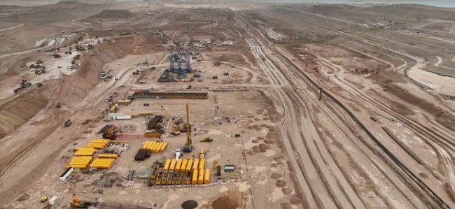 Специально для обеспечения нужд проекта в Саудовской Аравии запущен новый завод по производству бетона, способный ежедневно вырабатывать до 20 000 кубических метров готового раствора. В строительстве занято не менее 100 000 рабочих, которые в настоящий момент трудятся над расчисткой огромного участка пересеченной местности для заливки массивного фундамента. Полным ходом идет работа и по установке свай: из 30 000 запланированных опор пока установлены 1000.