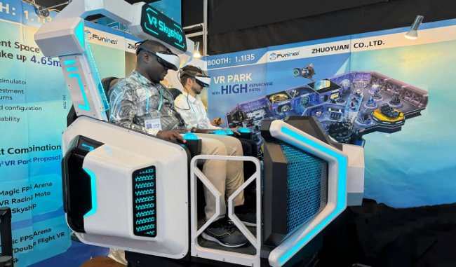 В каталоге на 2025 год производителя систем для виртуальной реальности FuninVR появились две примечательные модели. Первая — это одноместная платформа под названием «VR DropTower», а во второй «VR Skyship» могут поместиться два человека. Их особенность в том, что пользователь внутри платформы не движется сам – его крутят в различных плоскостях для имитации полета, как в авиационном тренажере.