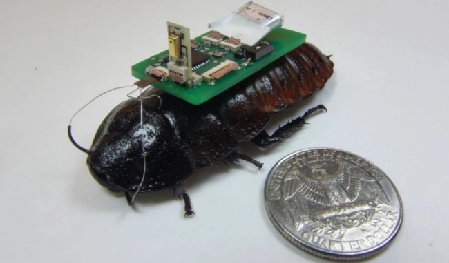 Профессор Хиротака Сато из Наньянского технологического университета в Сингапуре разработал технологию массового превращения тараканов в киборгов. Это своего рода «сборочная линия», на которой роботизированная рука оснащает насекомых «рюкзаком» с электронной начинкой. Что важно – нагрузка съемная, это позволяет тараканам отдыхать между выполнением миссий.