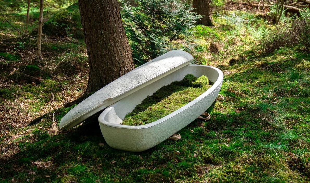 Для тех, кто предпочтет кремацию, Loop Living Cocoon предлагает альтернативную урну из биоразлагаемого мицелия и конопляного волокна. При желании ее можно использовать, как кашпо для дерева в собственном саду. Цена «кокона» составляет $4000, урны — $400.