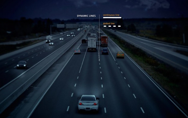 Основная идея её авторов – создать «умный хайвэй», убрав с него дополнительное освещение. Разметка «оживает» при свете фар проезжающих автомобилей, указывая водителям направление движения, рядность, съезды и другую необходимую дорожную информацию.