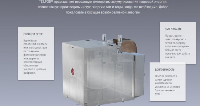 «Наша система накопления энергии — модульная, и это наш первый коммерческий заказ на одинарный блок мощностью 13 кВт, — сказал представитель Azelio. — TES.POD предназначен для ежедневной работы в циклическом режиме: зарядки накопителя в течение 4–6 часов, а затем выработки электроэнергии в течение 10–13 часов».