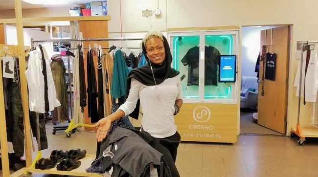 Основная разработка компании Presso, базирующейся в городе Атланте штата Джорджия — это киоск, предназначенный для автоматического выполнения профессиональной сухой чистки одежды. Причем один рабочий процесс, подразумевающий обработку паром и специальными средствами, в установке длится всего около пяти минут.