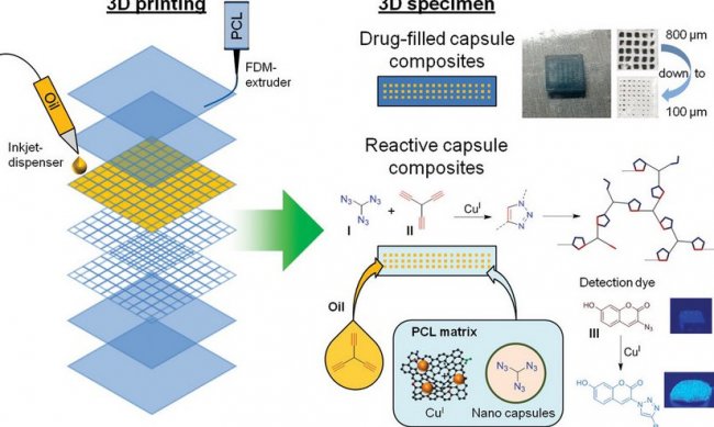 «Будущее заключается в создании более сложных технологий, подразумевающих объединение нескольких этапов производства, — сказал профессор Вольфганг Биндер. — Именно поэтому мы искали метод интеграции жидкости непосредственно в твердый материал прямо в процессе печати».