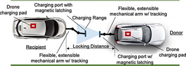 Система подразумевает возможность соединения электромобилей друг с другом или с мобильным зарядными станциями на ходу (кстати, по сходному принципу работает устройство Peloton, запатентованное компанией Apple в 2018 году). Перераспределение энергии между участниками движения будет контролироваться облачной системой управления.