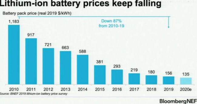 Увеличение плотности энергии является основой подвижек и по другим направлениям электромобилизации. По мере того, как этот показатель улучшается, тот же пакет емкостью 100 кВт*ч становится легче. Более легкие элементы питания позволяют снизить расходы на логистику по всей цепочке поставок, что еще больше снижает стоимость батареи. Маккерчер также прокомментировал цены, отметив, что стоимость литий-ионных аккумуляторов в последние годы продолжает падать. Ожидается, что эта тенденция сохранится: BloombergNEF оценивает падение цены со $156/кВт*ч в 2019 году до $135/кВт*ч в 2020 году.