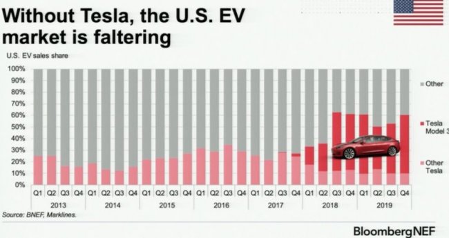 На прошлой неделе в ходе саммита аналитического агентства в Сан-Франциско Колин Маккерчер из BloombergNEF в своем выступлении привел доводы в пользу того, что электромобильная отрасль находится на пороге «окончания начала». Положение вещей, при котором электромобили становятся мейнстримом или выходят из ранней стадии роста, вызвано увеличением плотности энергии в литий-ионных батареях и соответствующим снижением их стоимости.