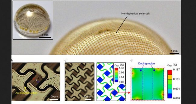 Авторы исследования утверждают, что они создали полусферическую солнечную батарею, которая может поглощать больше света, чем плоский эквивалент.