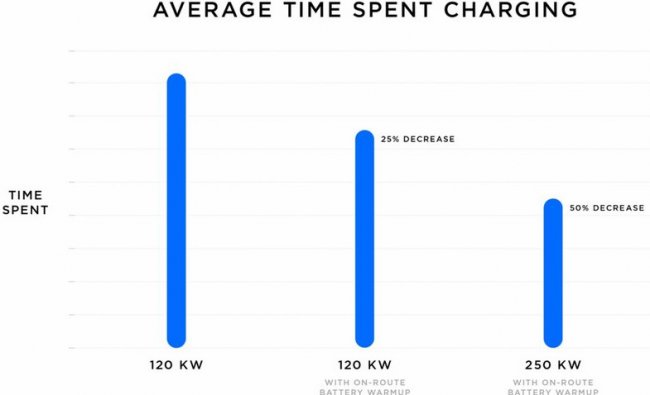Мощность новой станции обеспечит сокращение времени зарядки на 50%. При этом на полную зарядку одного электрокара понадобится, в среднем, не более 15 минут. Tesla также обещает, что 5 минут подключения к V3 будет достаточно для пополнения запаса хода на 120 км пути, а за один час зарядное устройство выдаст энергии, которой хватит на 1600 км.