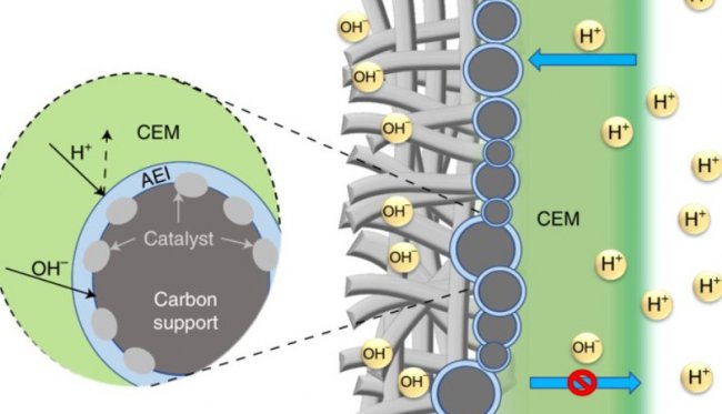 Созданная рабочей группой топливная ячейка содержит кислотный электролит на одном электроде и щелочной электролит на другом. Для работы системы электролиты должны быть разведены, и в качестве их разделителя выступает мембрана с pH-градиентной биполярной поверхностью (PMBI-мембрана). Этот материал, созданный в стенах Инженерного института МакКелви, являющегося подразделением Университета Вашингтона, предотвращает смешивание кислоты и щелочи, образует электрохимический градиент и обеспечивает эффективную работу системы.