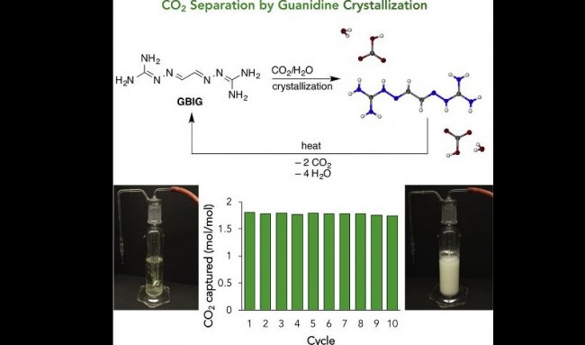 Несмотря на активное внедрение альтернативных источников энергии, крупные промышленные электростанции еще долго будут загрязнять атмосферу продуктами переработки. Ученые из Национальной лаборатории Ок-Риджа (ORNL) создали вещество, которое способно улавливать углерод из выбросов, потребляя при этом меньше энергии, чем ранее известные методы. В этом им помогло органическое соединение под названием (бис)иминогуанидин (BIG), которое образует связь с отрицательно заряженными ионами. Исследователи поняли, что в его состав входят бикарбонатные анионы, которые могут быть использованы для захвата двуокиси углерода.
