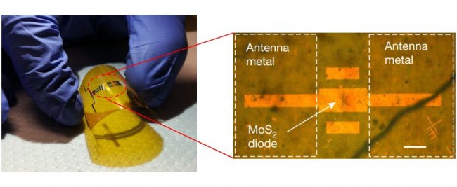 Обычно выпрямителем в ректеннах служит кремний или арсенид галлия, но это жесткие материалы, и ученые MIT использовали дисульфид молибдена, который признан одним из тончайших полупроводников на планете, - его толщина всего три атома, поэтому его называют 2D-материалом.