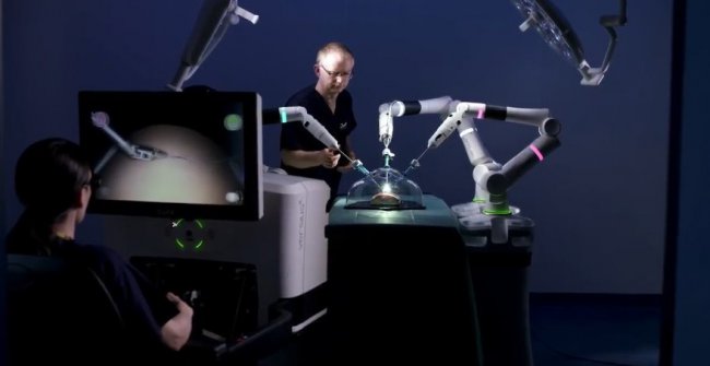В настоящее время лидером в области роботизированный хирургии является система da Vinci, созданная калифорнийской компанией Intuitive Surgical. В Великобритании работы da Vinci используются с 2001 года, в мире насчитывается около 4 500 роботов. В основном их применяют при операциях на предстательной железе, мочевом пузыре и в гинекологии, хотя диапазон возможных операций постоянно увеличивается.