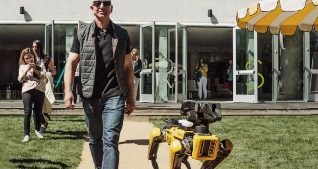 Глава интернет-магазина Джефф Безос давно славится своей любовью к робототехнике. Недавно он появился на конференции MARS, посвященной последним достижениям в области машинного обучения, исследования космоса и робототехники, со своим личным псом-роботом SpotMini от Boston Dynamics. Во время презентации этот робот показывал, как он умеет приносить хозяину пиво и открывать двери с помощью роборуки.