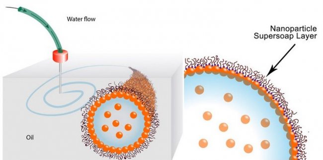 Группа ученых под руководством Тома Расселла модифицировала стандартный 3D-принтер так, чтобы он мог выпускать тонкие струи воды непосредственно в контейнер с силиконовым маслом. Образованные структуры не разлетаются на капли и сохраняют свою форму благодаря особому поверхностно-активному элементу, который характеризуют как «супермыло» – это вещество уменьшает поверхностное натяжение, отделяющее воду от окружающей жидкости.