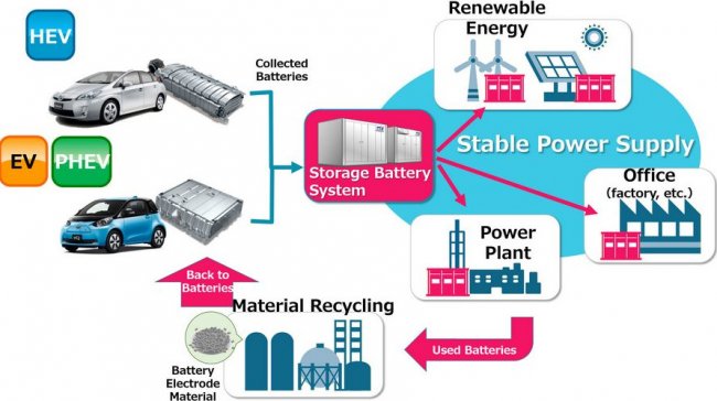 Отслужившие аккумуляторы с гибридных и полностью электрических автомобилей могут получить вторую жизнь, считают в компании Toyota. В новом пилотном проекте японские инженеры хотят создать энергохранилище мощностью 10 000 кВт, состоящее из 10 000 старых батарей от моделей Prius и iQ EV. С самого начала продаж этих электромобилей Toyota организовала сбор и переработку отработавших АКБ, чтобы проверить, выгодно ли будет и дальше использовать их. В компании полагают, что пониженная емкость батарей не является препятствием в данном случае.