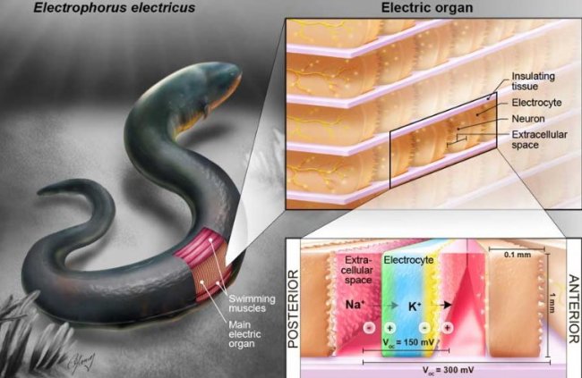 «Электрические органы угрей невероятно сложны. Они способны производить гораздо больше энергии, чем человек, - говорит один из авторов исследования. - Но для нас важно воспроизвести хотя бы основы протекающего процесса».