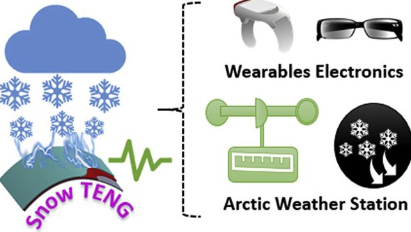 Cнежинки, несмотря на свои крохотные размеры и вес (около 5 мм в диаметре при массе 0,004 г), являются источниками энергии. Ученые Калифорнийского университета сумели создать устройство snow-TENG, которое использует это свойство. Его работа основана на захвате положительных зарядов падающих