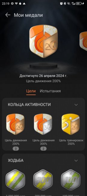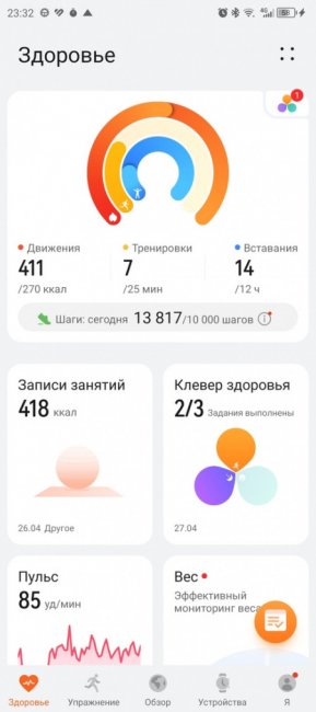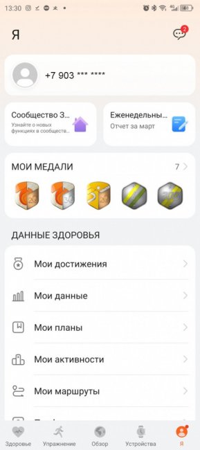 В разделе «Я» можно просмотреть различную информацию о своей активности (причем достижения за те или иные действия награждаются медалями), ознакомиться с еженедельным или ежемесячным отчетом, просмотреть данные о здоровье, а также различные забавные факты, которые были выведены часами на основании вашей активности.