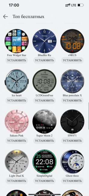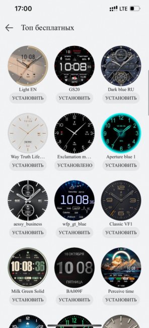 Крайне полезной функцией является возможность скачать и установить на часы дизайнерский циферблат, причем доступны как платные опции (с ценой от 30 до 180 руб. и возможностью предпросмотра), так и огромное количество (более 300) высококачественных бесплатных вариантов.
